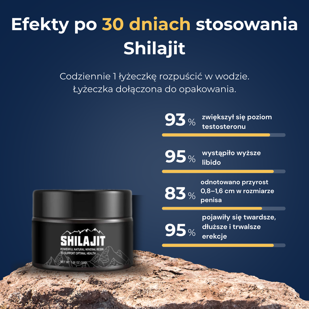 W 30-dniowym badaniu klinicznym mężczyźni, którzy codziennie stosowali Czysty Shilajit, odnotowali mierzalny wzrost poziomu testosteronu.